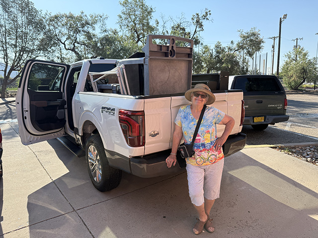 The caravan entered the Expo New Mexico fairgrounds and snaked their way around to the building where horticulture events will take place. Unloading went as smoothly as the loading. There was much to do after unloading after which volunteers began prepping the space for the show by organizing, setting up tables and cleaning. The New Mexico State Fair runs from September 4th to September 14.
