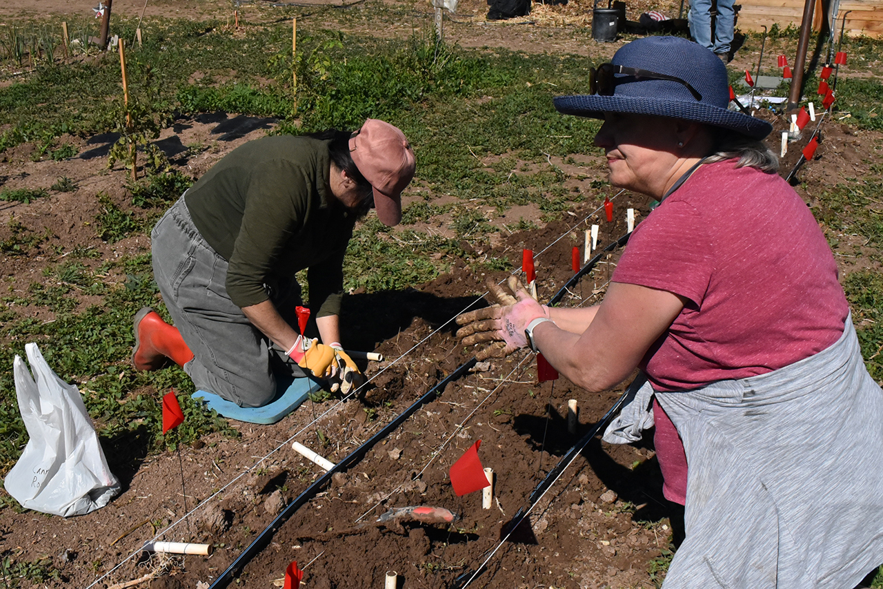 Dina and Maureen planting on plot E1.